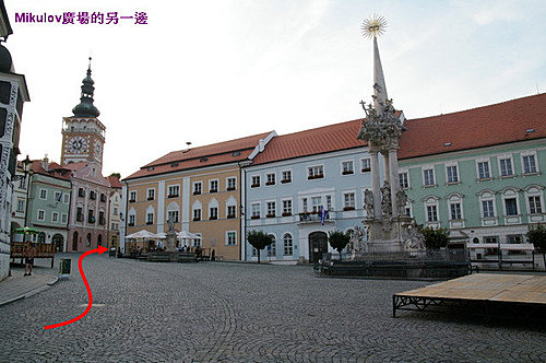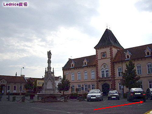 因為我去的時候Lednice在修路,所以是穿過小路才到廣場的,