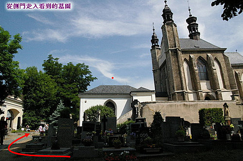 以下圖箭頭有兩雙塔的教堂為地標,反正往地標的方向鑽都可以,