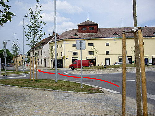我是在坐巴士到Mikulov的,在如下圖這個倒U型公園的另一端下車的,