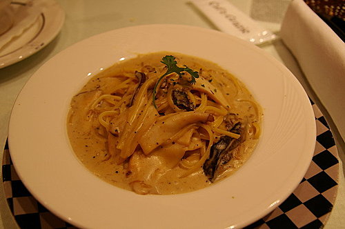 牛肝蕈生麵-因為生麵沒了,只好改用扁麵,有些太奶吃到後來有點膩,但我喜歡牛肝蕈的味道。