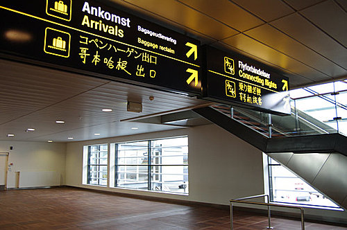 才剛步出飛機,便驚見寫著「哥本哈根出口」、「轉機旅客」的指示牌,