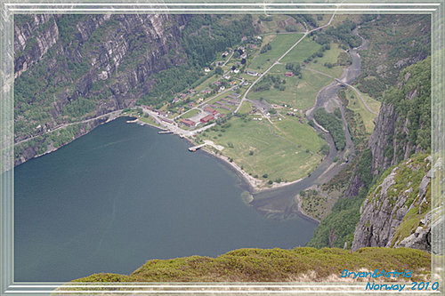 遠眺Lysefjorden小鎮及港口、裡塞峽灣的壯麗、