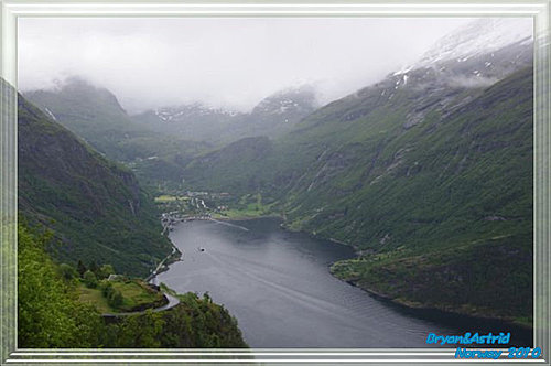 而暫歇的雨,才能搶拍了幾張Geiranger的倩影,