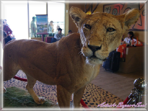 在Lobby的正中央,佇立許許如生的母獅標本,牠是在六福村野生動物園裡終老的。