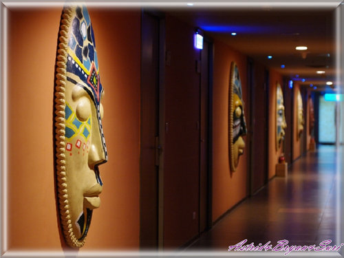 在不論是斑馬館或長頸鹿館的走道上都以非洲原始臉譜裝飾