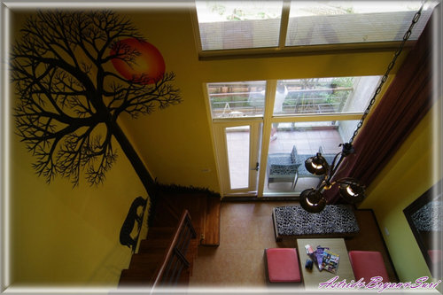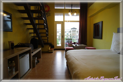 肯亞房是樓中樓,一樓部分有一張雙人床、小小客廳及陽台