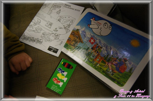 上飛機沒坐定,瑞航人員立即送上拼圖、畫冊、粉彩筆,