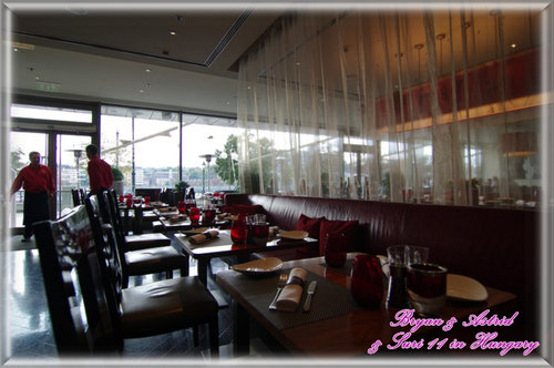 五星級的飯店餐廳,緊臨著多腦河岸的美景,